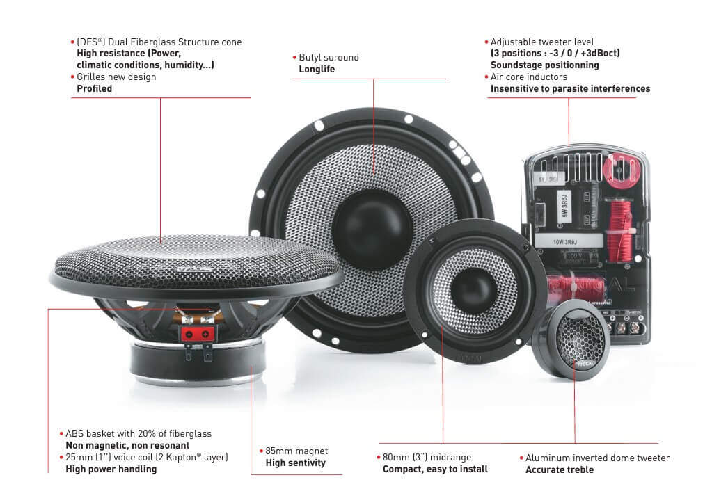 De gran robustez, este kit de calidad le ofrece un elevado mantenimiento de la potencia incluso después de una escucha prolongada de alto nivel sonoro. Desarrolla medios controlados y define graves dinámicos y agudos precisos. ¡Viva el sonido «live» Focal!
