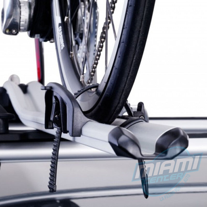 Cierre a presión que se ajusta a todo tipo de horquillas/ También para bicicletas equipadas con frenos de disco y eje completo de 20 mm (adaptador incluido)/ Correas de apertura rápida para la rueda trasera (ajustables para distintos tamaños de ruedas)/ El peso máximo permitido por bicicleta es de 17 kg/ Este portabicicletas ha sido premontado, no se requieren herramientas/ Bloqueo: la bicicleta al portabicicletas y éste a las barras (cerraduras incluidas)/ Los adaptadores para guías T (20x20mm) están incluidos para el montaje del portabicicletas directamente en las guías T de las barras de techo/ Cumple las normas CityCrash.