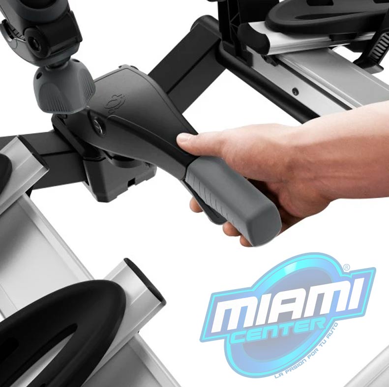 - Capacidad para transportar bicicletas con mayor distancia entre los ejes gracias a las abrazaderas de rueda extensibles que se quitan y se ponen con un solo movimiento