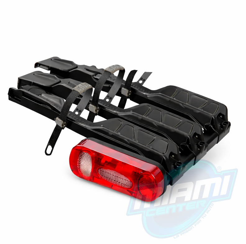 A pesar de su gran capacidad de carga, el Scorpion Lite 3 es plegable e inclinable, lo que facilita su uso diario. La función de inclinación permite acceder al maletero sin desmontar las bicicletas, mientras que su sistema de fijación rápida asegura una instalación firme y sencilla. Incluye panel de luces traseras y soporte de matrícula para mayor seguridad vial.