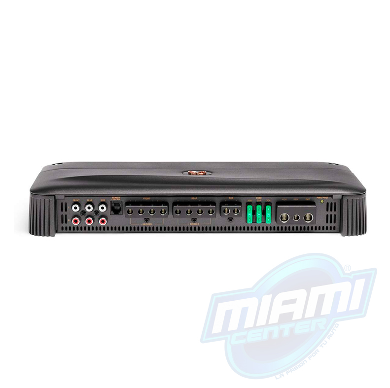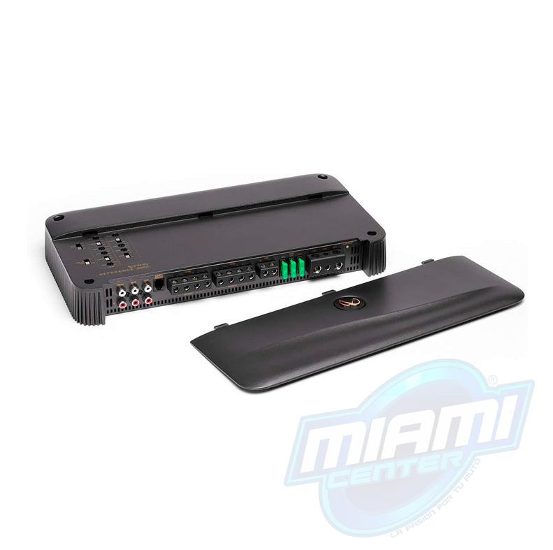 Amplificador para automóvil de 5 canales de la serie Reference: 50 vatios RMS x 4 a 4 ohmios + 500 vatios RMS x 1 a 2 ohmios.